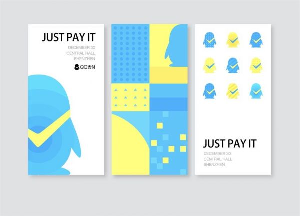 视觉延展的图形元素来源并不是凭空捏造的,图形元素需要与品牌、Logo 之间是有规律可循的,QQ 支付用简约的抽象图形表达 QQ 支付的品牌特性,这样的视觉延展更具有流动性。